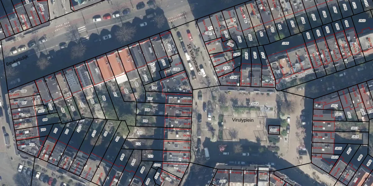 Virulyplein 12 is gelegen op kadastraal perceel DHV00I706. Deze kadastrale aanduiding is uniek en wordt gebruikt door het Kadaster om eigendomsrechten en andere zakelijke rechten vast te leggen. Het perceel maakt onderdeel uit van de kadastrale gemeente Delfshaven.
