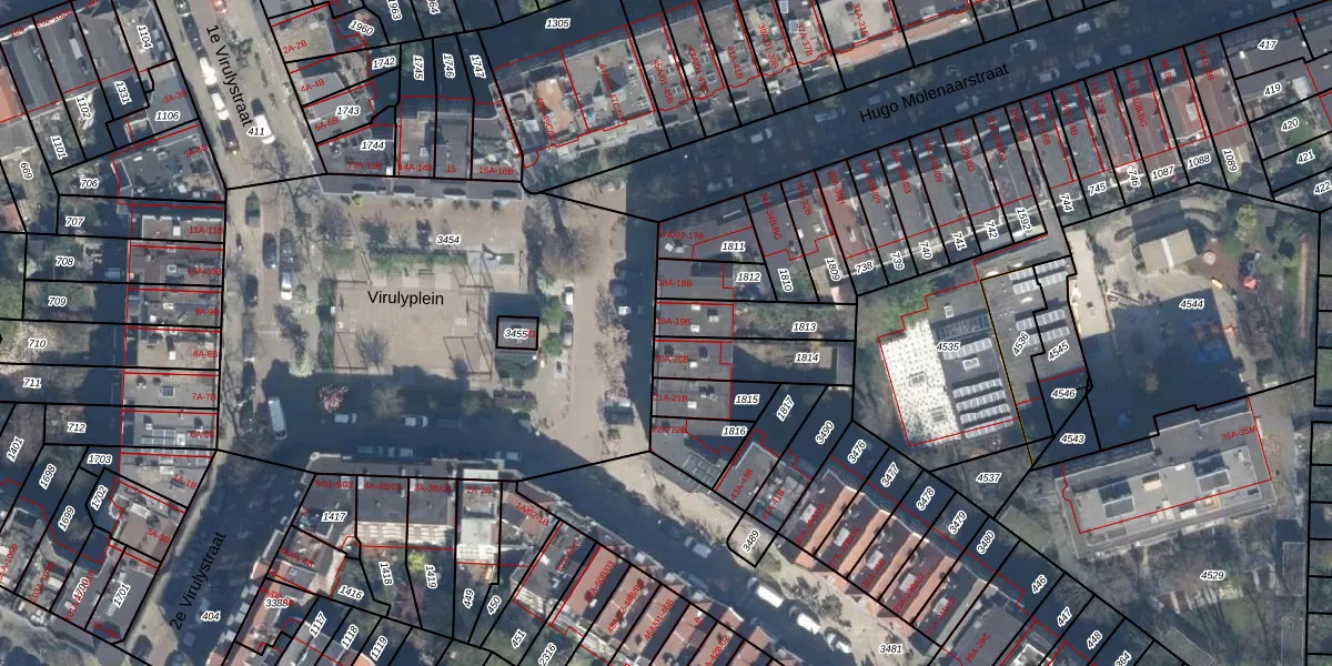 Virulyplein 19-A is gelegen op kadastraal perceel DHV00I1813. Deze kadastrale aanduiding is uniek en wordt gebruikt door het Kadaster om eigendomsrechten en andere zakelijke rechten vast te leggen. Het perceel maakt onderdeel uit van de kadastrale gemeente Delfshaven.