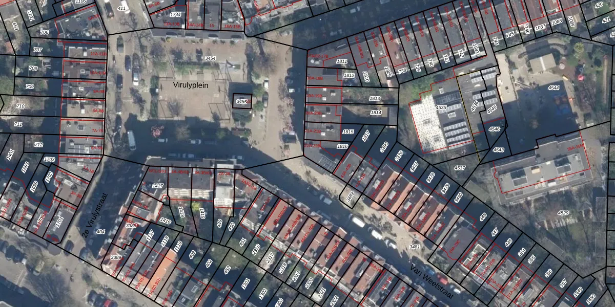 Virulyplein 22-B is gelegen op kadastraal perceel DHV00I1816. Deze kadastrale aanduiding is uniek en wordt gebruikt door het Kadaster om eigendomsrechten en andere zakelijke rechten vast te leggen. Het perceel maakt onderdeel uit van de kadastrale gemeente Delfshaven.