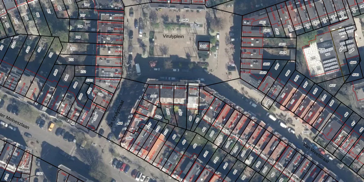 Virulyplein 3-B-01 is gelegen op kadastraal perceel DHV00I1419. Deze kadastrale aanduiding is uniek en wordt gebruikt door het Kadaster om eigendomsrechten en andere zakelijke rechten vast te leggen. Het perceel maakt onderdeel uit van de kadastrale gemeente Delfshaven.