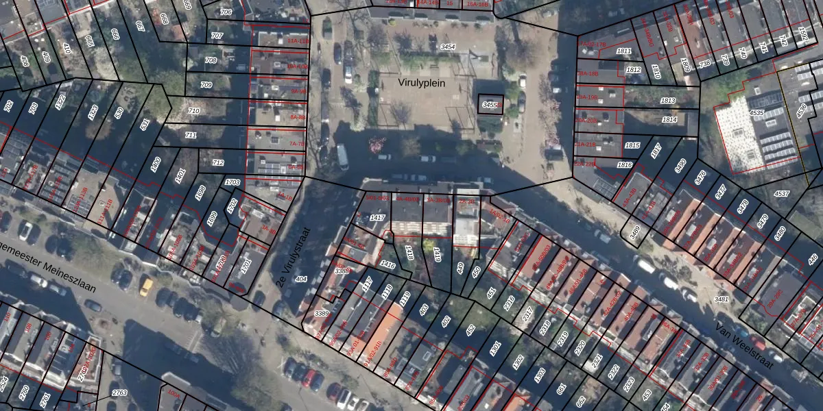 Virulyplein 4-B-01 is gelegen op kadastraal perceel DHV00I1418. Deze kadastrale aanduiding is uniek en wordt gebruikt door het Kadaster om eigendomsrechten en andere zakelijke rechten vast te leggen. Het perceel maakt onderdeel uit van de kadastrale gemeente Delfshaven.