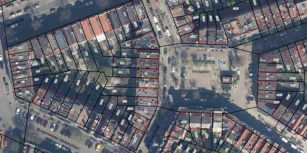 Virulyplein 9-B is gelegen op kadastraal perceel DHV00I709. Deze kadastrale aanduiding is uniek en wordt gebruikt door het Kadaster om eigendomsrechten en andere zakelijke rechten vast te leggen. Het perceel maakt onderdeel uit van de kadastrale gemeente Delfshaven.