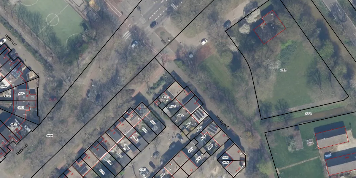 Het perceel waarop Visbyerf 1 staat heeft een oppervlakte van 107 m². Dit is een middelgroot perceel. De perceeloppervlakte wordt geregistreerd door het Kadaster. Gedetailleerde informatie over de maten van dit perceel kunt u vinden in het rapport Kadastrale kaart met maatvoering van Visbyerf 1.