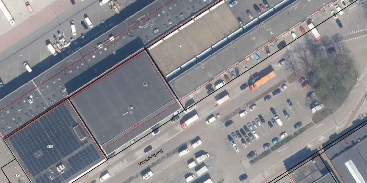 Het perceel waarop Vlaardingweg 37 staat heeft een oppervlakte van 4742 m². Dit is een zeer groot perceel. De perceeloppervlakte wordt geregistreerd door het Kadaster. Gedetailleerde informatie over de maten van dit perceel kunt u vinden in het rapport Kadastrale kaart met maatvoering van Vlaardingweg 37.