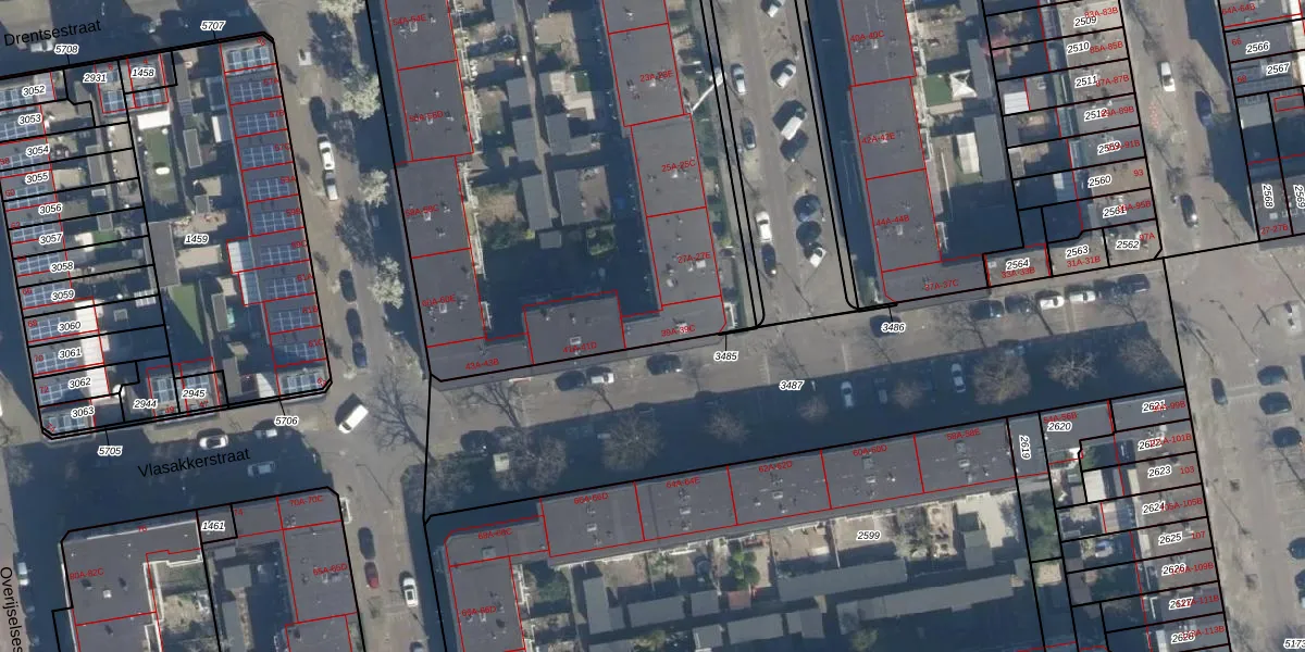 Vlasakkerstraat 39-A is gelegen op kadastraal perceel RTD05V3482. Deze kadastrale aanduiding is uniek en wordt gebruikt door het Kadaster om eigendomsrechten en andere zakelijke rechten vast te leggen. Het perceel maakt onderdeel uit van de kadastrale gemeente Rotterdam.