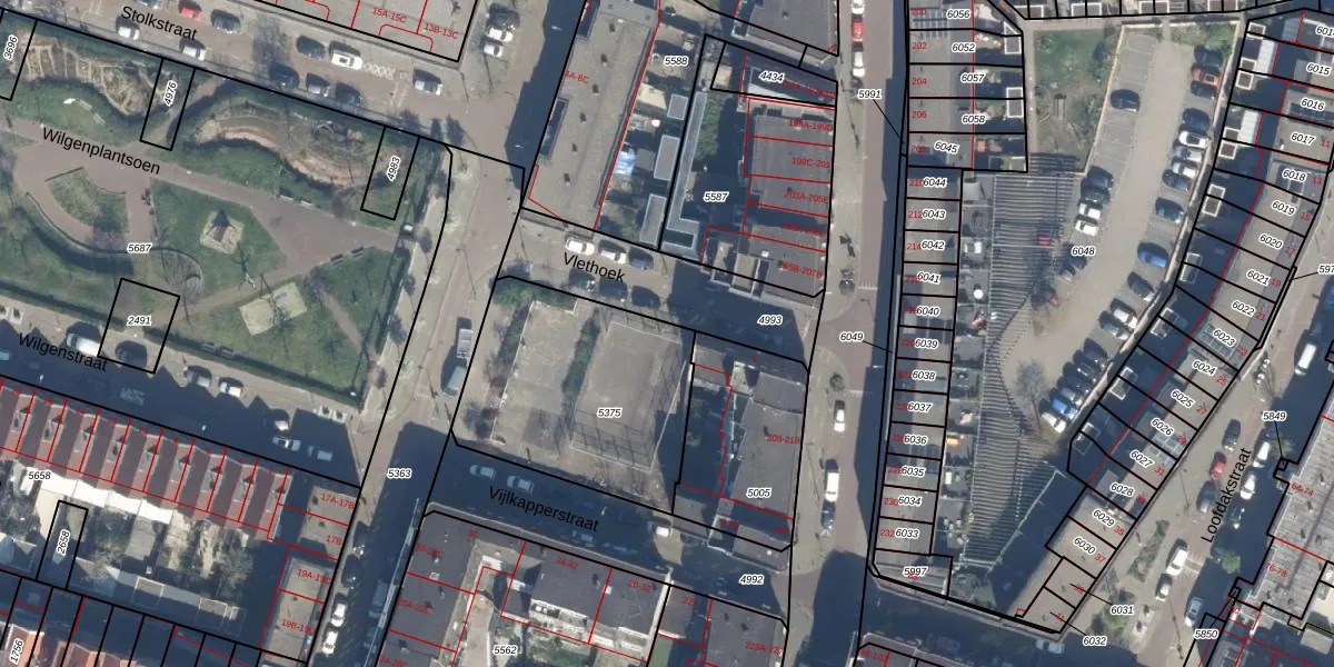 Het perceel waarop het adres ligt is RTD07-W-5375. De afkorting 'RTD07' staat voor kadastrale gemeente Rotterdam. De gemiddelde perceeloppervlakte in de kadastrale gemeente Rotterdam is 506,86 m². Dit perceel is met zijn 900 m² dus groter dan gemiddeld. De grootste perceeloppervlakte in de kadastrale gemeente is 10,8 ha. De kleinste oppervlakte bedraagt 0 m². Op het perceel zijn 11 adressen aanwezig. In de Basisregistratie Kadaster (BRK) werden de grenzen van het perceel geregistreerd op 06-12-2002.
