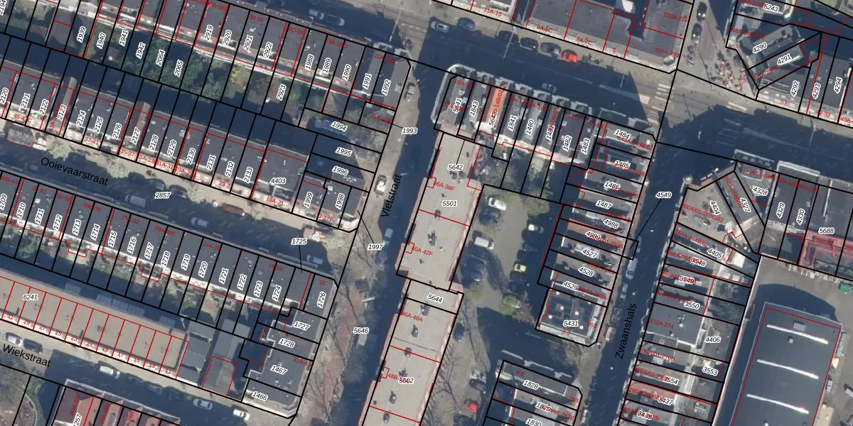 Vletstraat 40-B is gelegen op kadastraal perceel RTD07W5501. Deze kadastrale aanduiding is uniek en wordt gebruikt door het Kadaster om eigendomsrechten en andere zakelijke rechten vast te leggen. Het perceel maakt onderdeel uit van de kadastrale gemeente Rotterdam.