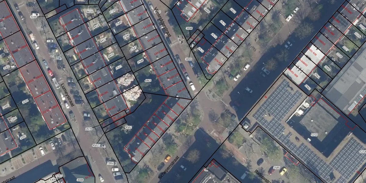 Het adres is gelegen op perceel 4463 in de sectie Z en de kadastrale gemeente Rotterdam. De kadastrale aanduiding is aldus RTD10-Z-4463. De gemiddelde perceelgrootte in Rotterdam is 1601,7 m². Dit perceel is kleiner: de perceeloppervlakte bedraagt 438 m². Het kleinste perceel in de kadastrale gemeente is 0 m² groot. De grootste perceeloppervlakte is 30,3 ha. Op het perceel zijn 9 adressen aanwezig. In de Basisregistratie Kadaster (BRK) werden de grenzen van het perceel geregistreerd op 18-11-2002.
