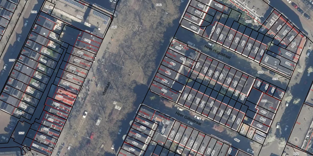 Vlietlaan 34-A is gelegen op kadastraal perceel KLG00G4599. Deze kadastrale aanduiding is uniek en wordt gebruikt door het Kadaster om eigendomsrechten en andere zakelijke rechten vast te leggen. Het perceel maakt onderdeel uit van de kadastrale gemeente Kralingen.