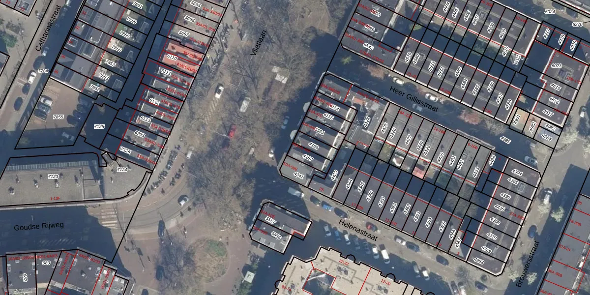 Het adres is gelegen op perceel 4157 in de sectie G en de kadastrale gemeente Kralingen. De kadastrale aanduiding is aldus KLG00-G-4157. De gemiddelde perceelgrootte in Kralingen is 1359,54 m². Dit perceel is kleiner: de perceeloppervlakte bedraagt 67 m². Het grootste perceel in de kadastrale gemeente is 1,32 km². Het kleinste perceel heeft een oppervlakte van 0 m². Er zijn 6 adressen aanwezig op het perceel. De huidige grenzen van het perceel zijn digitaal in de Basisregistratie Kadaster (BRK) geregistreerd op 24-01-2003.