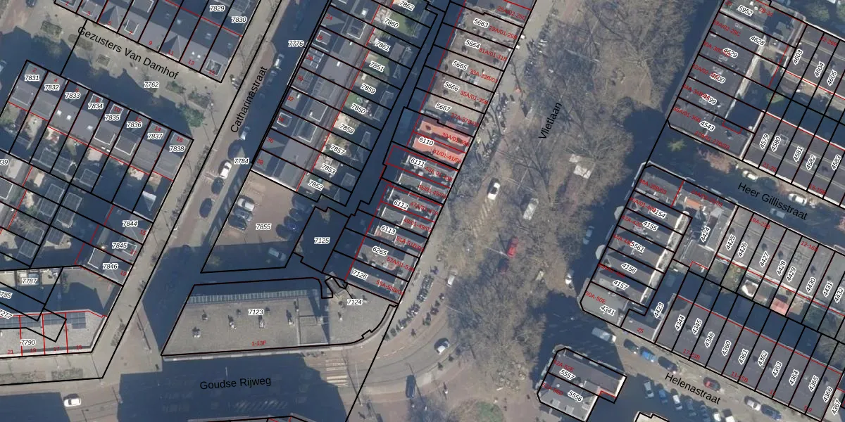 Vlietlaan 47-A-01 is gelegen op kadastraal perceel RTD07R6112. Deze kadastrale aanduiding is uniek en wordt gebruikt door het Kadaster om eigendomsrechten en andere zakelijke rechten vast te leggen. Het perceel maakt onderdeel uit van de kadastrale gemeente Rotterdam.