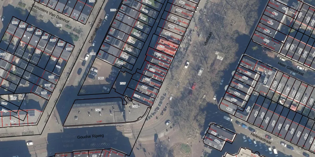 Het adres is gelegen op perceel 6112 in de sectie R en de kadastrale gemeente Rotterdam. De kadastrale aanduiding is aldus RTD07-R-6112. De gemiddelde perceelgrootte in Rotterdam is 506,86 m². Dit perceel is kleiner: de perceeloppervlakte bedraagt 152 m². Het grootste perceel in de kadastrale gemeente is 10,8 ha. Het kleinste perceel heeft een oppervlakte van 0 m². Op het perceel zijn 7 adressen aanwezig. De huidige grenzen van het perceel zijn digitaal in de Basisregistratie Kadaster (BRK) geregistreerd op 31-07-2009.