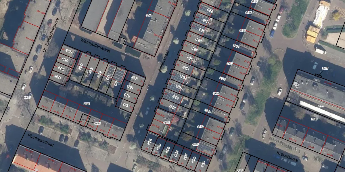 Vlinderstraat 24 is gelegen op kadastraal perceel KLG00F3513. Deze kadastrale aanduiding is uniek en wordt gebruikt door het Kadaster om eigendomsrechten en andere zakelijke rechten vast te leggen. Het perceel maakt onderdeel uit van de kadastrale gemeente Kralingen.