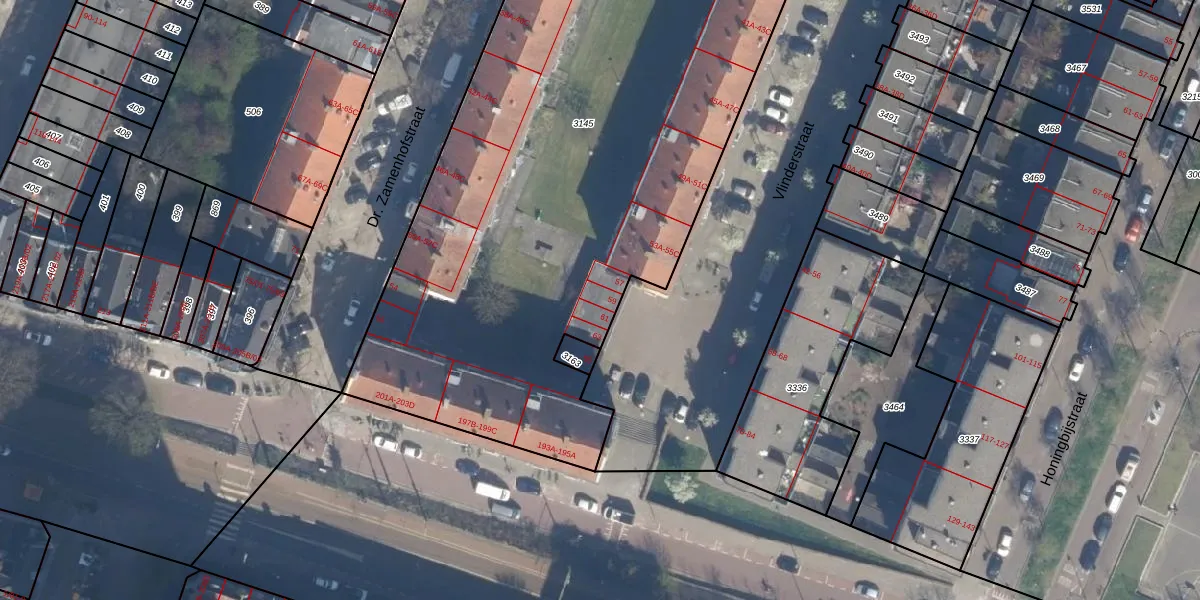 Vlinderstraat 59 is gelegen op kadastraal perceel KLG00F3145. Deze kadastrale aanduiding is uniek en wordt gebruikt door het Kadaster om eigendomsrechten en andere zakelijke rechten vast te leggen. Het perceel maakt onderdeel uit van de kadastrale gemeente Kralingen.
