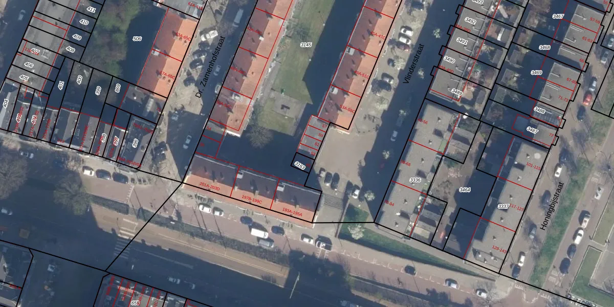 Vlinderstraat 63 is gelegen op kadastraal perceel KLG00F3145. Deze kadastrale aanduiding is uniek en wordt gebruikt door het Kadaster om eigendomsrechten en andere zakelijke rechten vast te leggen. Het perceel maakt onderdeel uit van de kadastrale gemeente Kralingen.