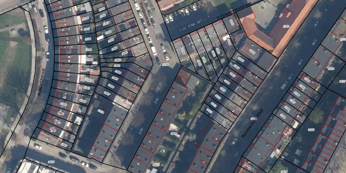 Het perceel waarop Voetjesstraat 26-A staat heeft een oppervlakte van 2296 m². Dit is een zeer groot perceel. De perceeloppervlakte wordt geregistreerd door het Kadaster. Gedetailleerde informatie over de maten van dit perceel kunt u vinden in het rapport Kadastrale kaart met maatvoering van Voetjesstraat 26-A.