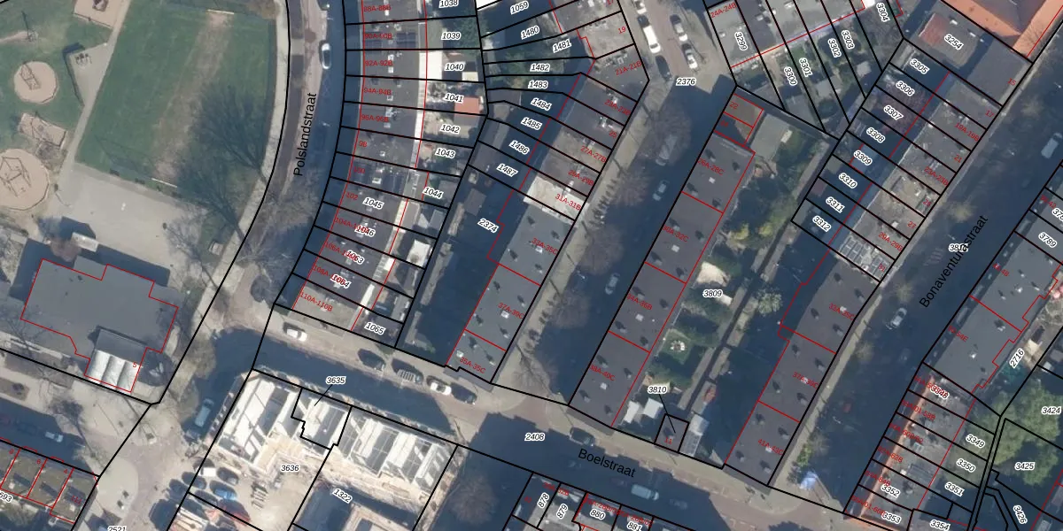 Het adres is gelegen op perceel 2374 in de sectie H en de kadastrale gemeente Charlois. De kadastrale aanduiding is aldus CLS00-H-2374. Het perceel is 753 m² groot. Dat is kleiner dan de gemiddelde perceeloppervlakte in Charlois, dat op 1147,69 m² ligt. Het grootste perceel in de kadastrale gemeente is 1,09 km². Het kleinste perceel heeft een oppervlakte van 0 m². Op het perceel zijn 15 adressen aanwezig. De huidige grenzen van het perceel zijn digitaal in de Basisregistratie Kadaster (BRK) geregistreerd op 10-06-2003.