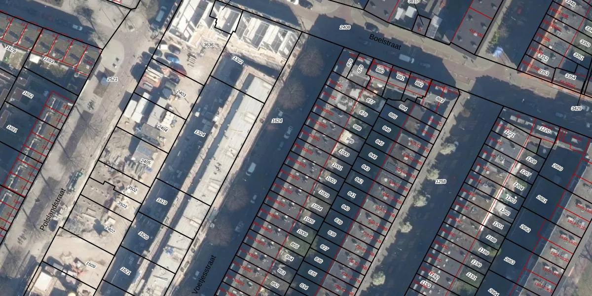 Het adres is gelegen op perceel 1001 in de sectie H en de kadastrale gemeente Charlois. De kadastrale aanduiding is aldus CLS00-H-1001. Het perceel is 105 m² groot. Dat is kleiner dan de gemiddelde perceeloppervlakte in Charlois, dat op 1147,69 m² ligt. Het grootste perceel in de kadastrale gemeente is 1,09 km². Het kleinste perceel heeft een oppervlakte van 0 m². Er zijn 3 adressen aanwezig op het perceel. In de Basisregistratie Kadaster (BRK) werden de grenzen van het perceel geregistreerd op 10-06-2003.
