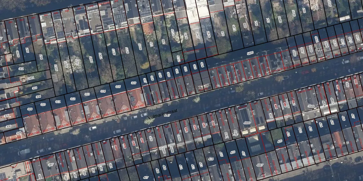 Het perceel waarop Volmarijnstraat 129-A staat heeft een oppervlakte van 85 m². Dit is een klein perceel. De perceeloppervlakte wordt geregistreerd door het Kadaster. Gedetailleerde informatie over de maten van dit perceel kunt u vinden in het rapport Kadastrale kaart met maatvoering van Volmarijnstraat 129-A.