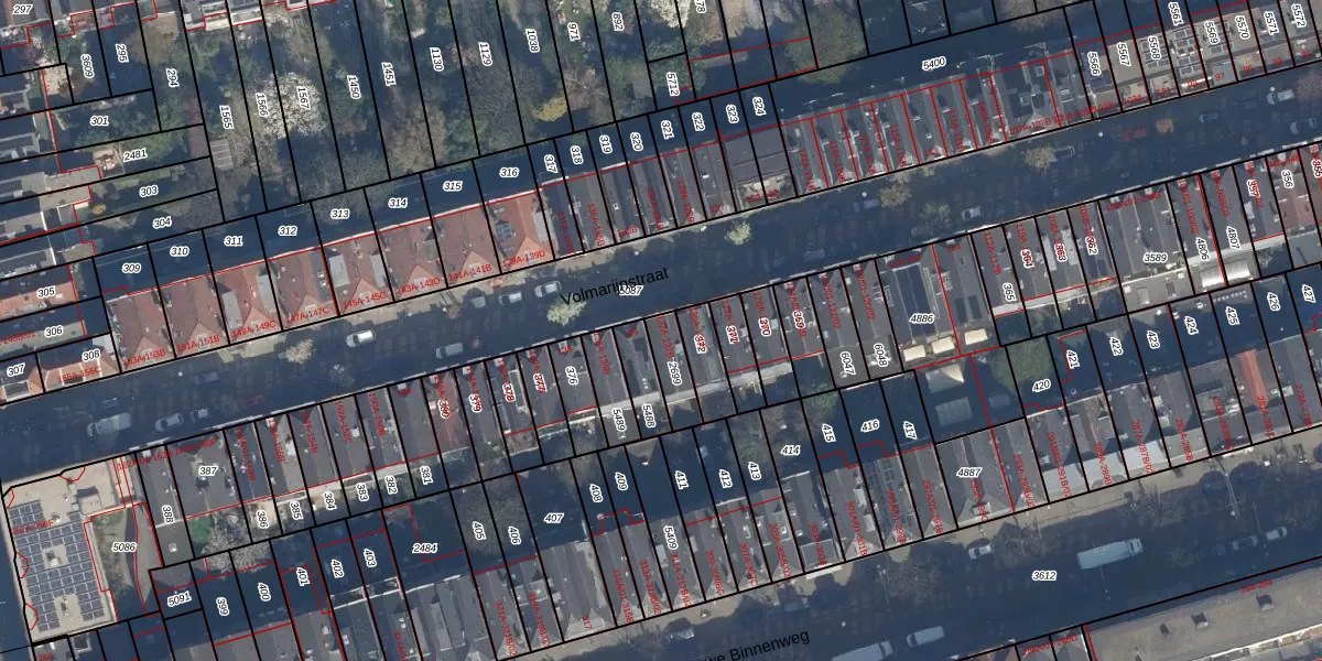 Het perceel waarop Volmarijnstraat 132-B staat heeft een oppervlakte van 90 m². Dit is een klein perceel. De perceeloppervlakte wordt geregistreerd door het Kadaster. Gedetailleerde informatie over de maten van dit perceel kunt u vinden in het rapport Kadastrale kaart met maatvoering van Volmarijnstraat 132-B.