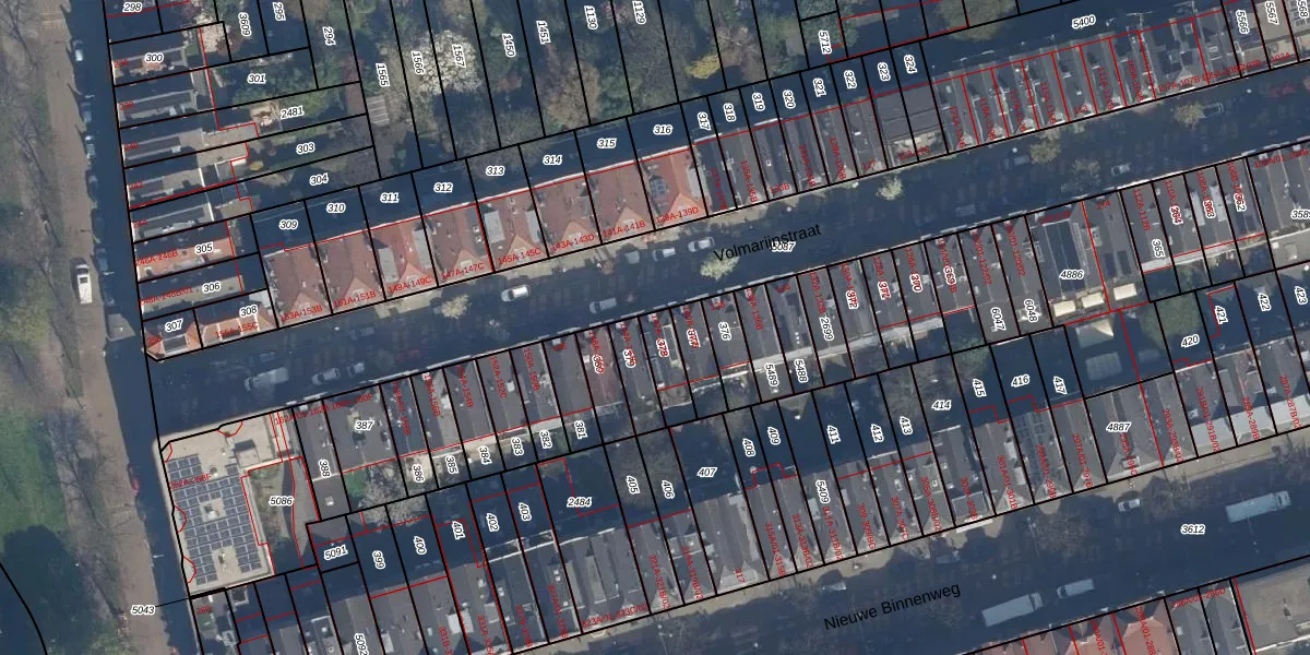 Het perceel waarop Volmarijnstraat 142-A staat heeft een oppervlakte van 90 m². Dit is een klein perceel. De perceeloppervlakte wordt geregistreerd door het Kadaster. Gedetailleerde informatie over de maten van dit perceel kunt u vinden in het rapport Kadastrale kaart met maatvoering van Volmarijnstraat 142-A.