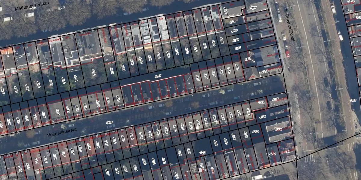 Het adres ligt op het perceel DHV00-C-5617, dat zich in de kadastrale gemeente Delfshaven bevindt. De gemiddelde perceeloppervlakte in de kadastrale gemeente Delfshaven is 628,61 m². Dit perceel is met zijn 645 m² dus groter dan gemiddeld. Het grootste perceel in de kadastrale gemeente is 22,2 ha. Het kleinste perceel heeft een oppervlakte van 0 m². Op het perceel zijn 13 adressen aanwezig. In de Basisregistratie Kadaster (BRK) werden de grenzen van het perceel geregistreerd op 08-11-2005.