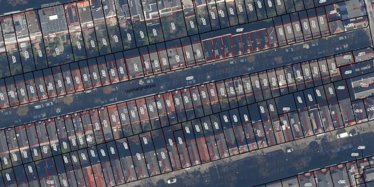 Het perceel waarop Volmarijnstraat 38-A staat heeft een oppervlakte van 81 m². Dit is een klein perceel. De perceeloppervlakte wordt geregistreerd door het Kadaster. Gedetailleerde informatie over de maten van dit perceel kunt u vinden in het rapport Kadastrale kaart met maatvoering van Volmarijnstraat 38-A.