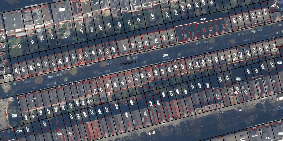 Het perceel waarop Volmarijnstraat 44-A staat heeft een oppervlakte van 84 m². Dit is een klein perceel. De perceeloppervlakte wordt geregistreerd door het Kadaster. Gedetailleerde informatie over de maten van dit perceel kunt u vinden in het rapport Kadastrale kaart met maatvoering van Volmarijnstraat 44-A.