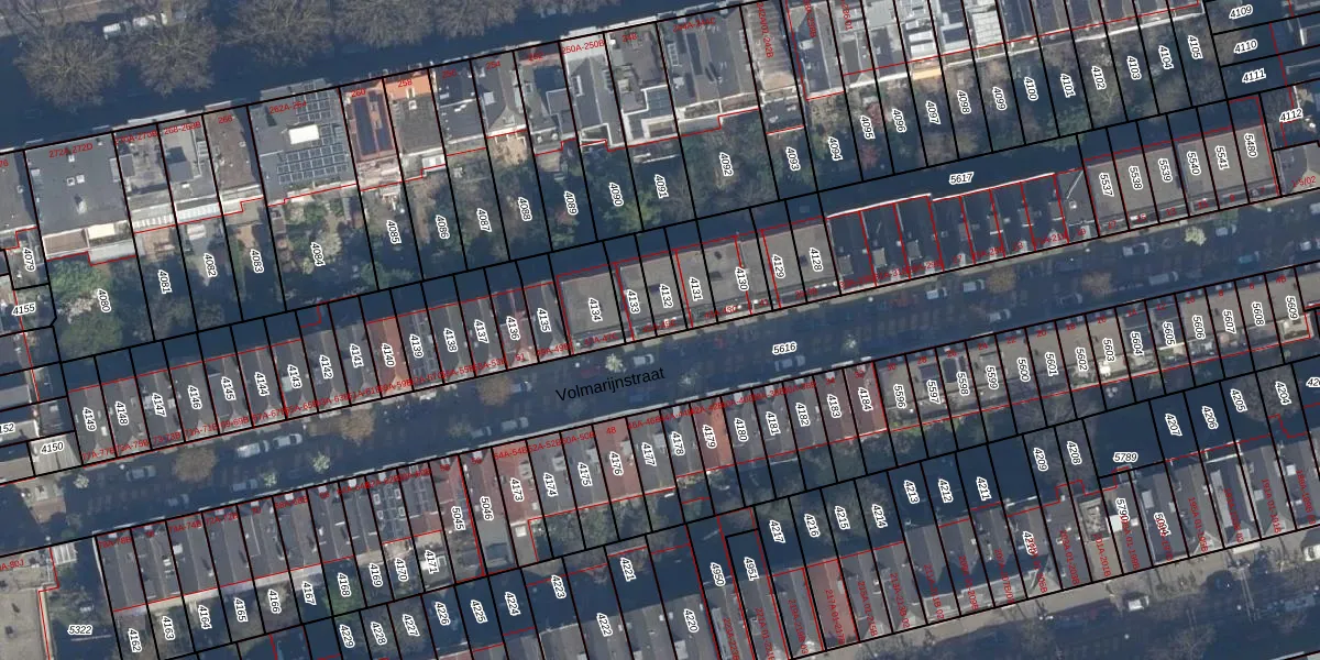 Het perceel waarop Volmarijnstraat 45-C staat heeft een oppervlakte van 76 m². Dit is een klein perceel. De perceeloppervlakte wordt geregistreerd door het Kadaster. Gedetailleerde informatie over de maten van dit perceel kunt u vinden in het rapport Kadastrale kaart met maatvoering van Volmarijnstraat 45-C.