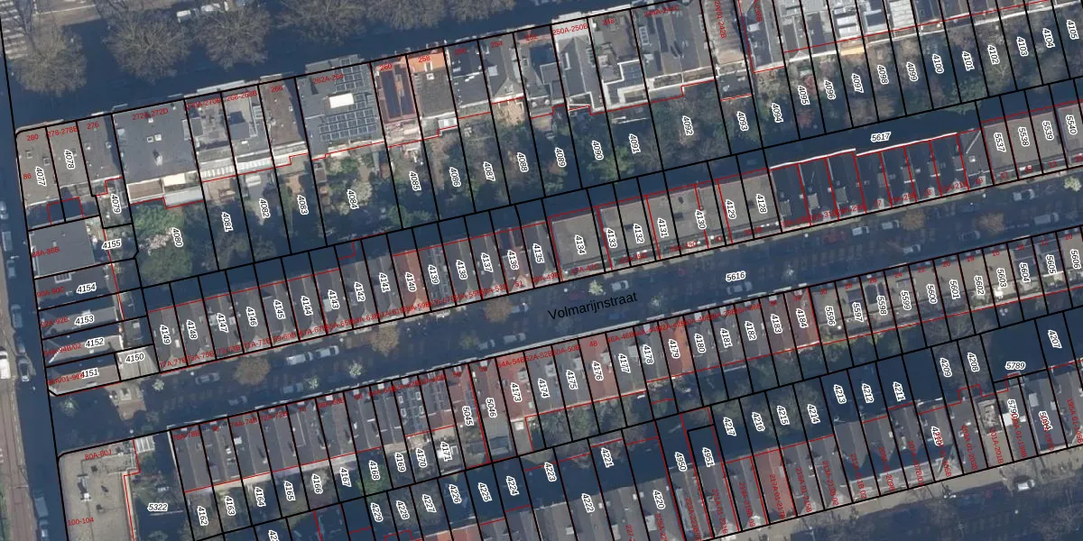 Het adres is gelegen op perceel 4135 in de sectie C en de kadastrale gemeente Delfshaven. De kadastrale aanduiding is aldus DHV00-C-4135. Het perceel is 77 m² groot. Dat is kleiner dan de gemiddelde perceeloppervlakte in Delfshaven, dat op 628,61 m² ligt. Het grootste perceel in de kadastrale gemeente is 22,2 ha. Het kleinste perceel heeft een oppervlakte van 0 m². Op het perceel zijn 2 adressen aanwezig. In de Basisregistratie Kadaster (BRK) werden de grenzen van het perceel geregistreerd op 20-11-2019.