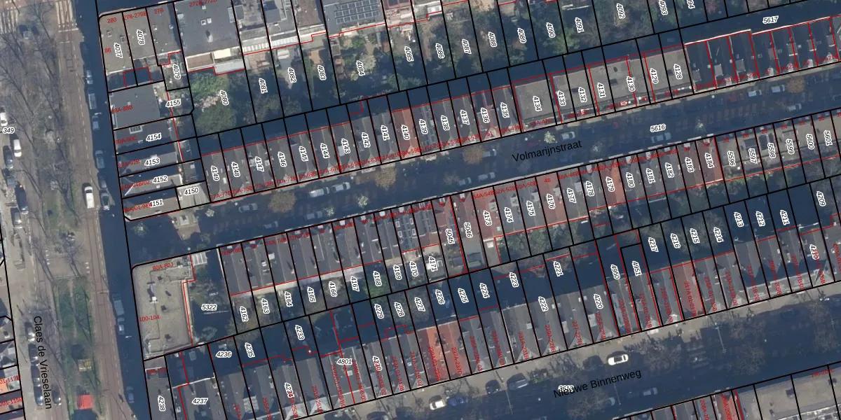 Het adres is gelegen op perceel 4171 in de sectie C en de kadastrale gemeente Delfshaven. De kadastrale aanduiding is aldus DHV00-C-4171. Het perceel is 94 m² groot. Dat is kleiner dan de gemiddelde perceeloppervlakte in Delfshaven, dat op 628,53 m² ligt. Het kleinste perceel in de kadastrale gemeente is 0 m² groot. De grootste perceeloppervlakte is 22,2 ha. Er zijn 2 adressen aanwezig op het perceel. De huidige grenzen van het perceel zijn digitaal in de Basisregistratie Kadaster (BRK) geregistreerd op 20-11-2019.