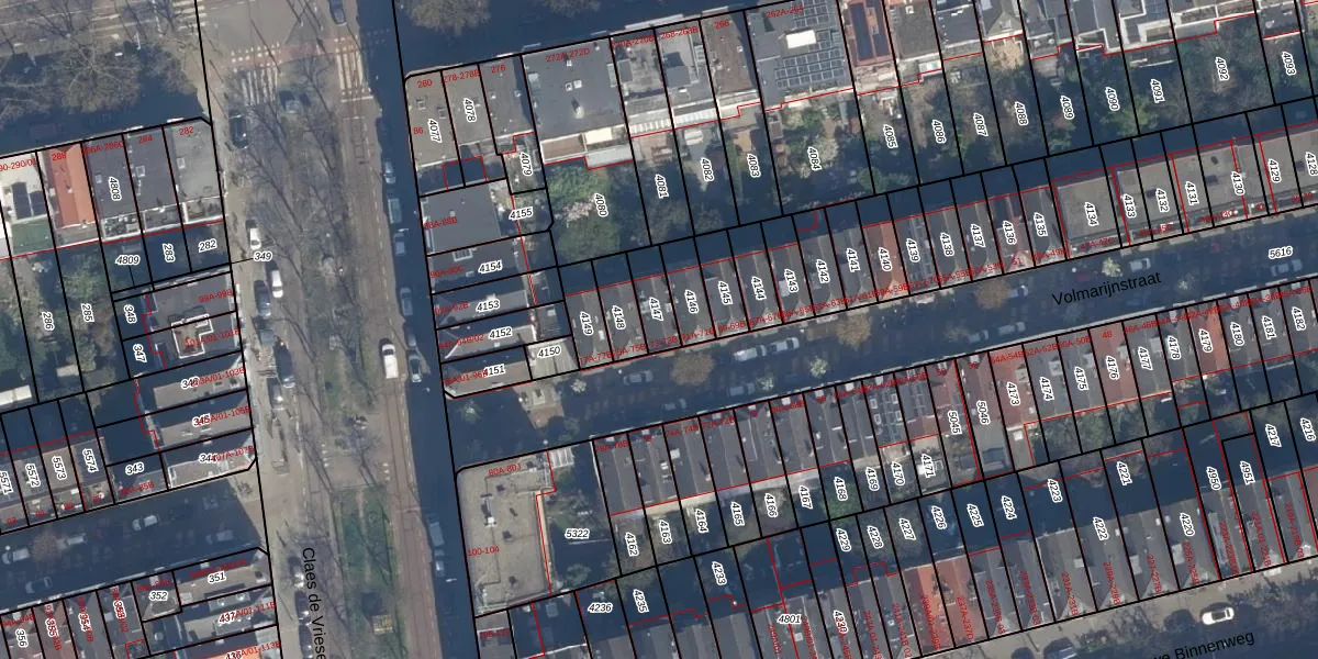 Het adres is gelegen op perceel 4147 in de sectie C en de kadastrale gemeente Delfshaven. De kadastrale aanduiding is aldus DHV00-C-4147. Het perceel is 85 m² groot. Dat is kleiner dan de gemiddelde perceeloppervlakte in Delfshaven, dat op 628,61 m² ligt. Het kleinste perceel in de kadastrale gemeente is 0 m² groot. De grootste perceeloppervlakte is 22,2 ha. Er zijn 3 adressen aanwezig op het perceel. De huidige grenzen van het perceel zijn digitaal in de Basisregistratie Kadaster (BRK) geregistreerd op 20-11-2019.