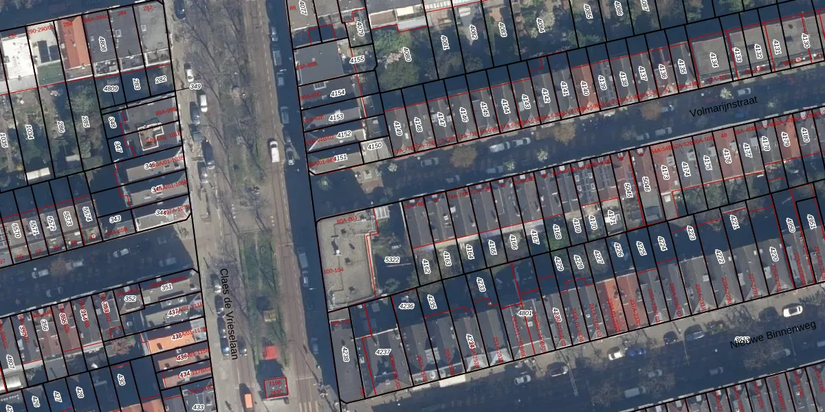 Het adres is gelegen op perceel 4162 in de sectie C en de kadastrale gemeente Delfshaven. De kadastrale aanduiding is aldus DHV00-C-4162. Het perceel is 116 m² groot. Dat is kleiner dan de gemiddelde perceeloppervlakte in Delfshaven, dat op 628,61 m² ligt. Het kleinste perceel in de kadastrale gemeente is 0 m² groot. De grootste perceeloppervlakte is 22,2 ha. Op het perceel zijn 2 adressen aanwezig. De huidige grenzen van het perceel zijn digitaal in de Basisregistratie Kadaster (BRK) geregistreerd op 20-11-2019.