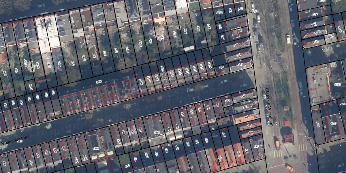 Het perceel waarop Volmarijnstraat 97 staat heeft een oppervlakte van 81 m². Dit is een klein perceel. De perceeloppervlakte wordt geregistreerd door het Kadaster. Gedetailleerde informatie over de maten van dit perceel kunt u vinden in het rapport Kadastrale kaart met maatvoering van Volmarijnstraat 97.