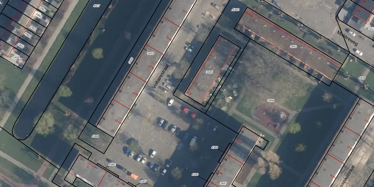 Voltairestraat 24 is gelegen op kadastraal perceel ISM01C3445. Deze kadastrale aanduiding is uniek en wordt gebruikt door het Kadaster om eigendomsrechten en andere zakelijke rechten vast te leggen. Het perceel maakt onderdeel uit van de kadastrale gemeente IJsselmonde.