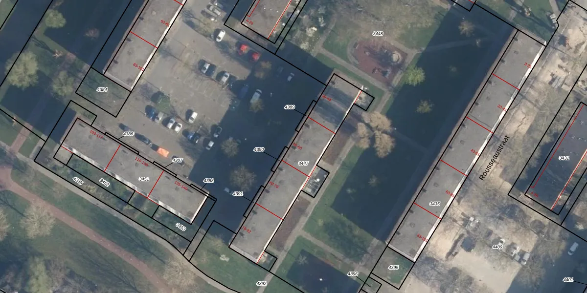 Het perceel waarop Voltairestraat 46 staat heeft een oppervlakte van 872 m². Dit is een groot perceel. De perceeloppervlakte wordt geregistreerd door het Kadaster. Gedetailleerde informatie over de maten van dit perceel kunt u vinden in het rapport Kadastrale kaart met maatvoering van Voltairestraat 46.