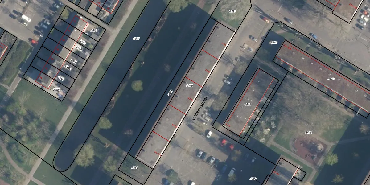 Voltairestraat 53 is gelegen op kadastraal perceel ISM01C3450. Deze kadastrale aanduiding is uniek en wordt gebruikt door het Kadaster om eigendomsrechten en andere zakelijke rechten vast te leggen. Het perceel maakt onderdeel uit van de kadastrale gemeente IJsselmonde.