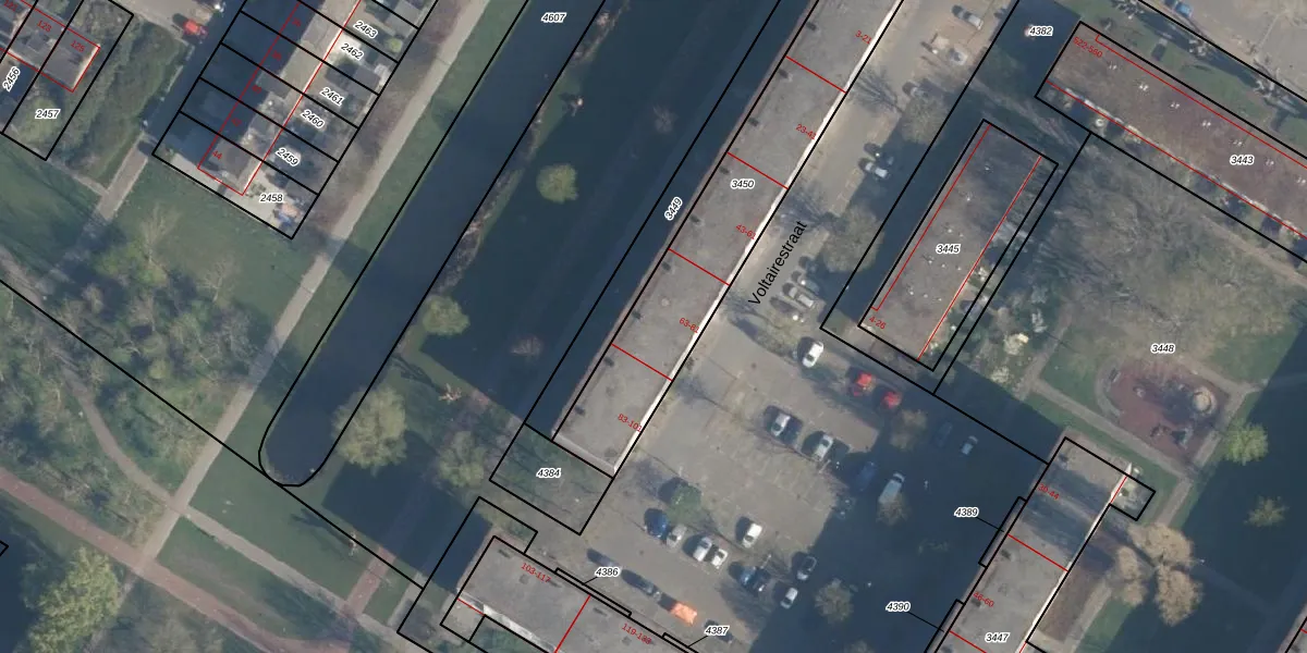 Het perceel waarop Voltairestraat 79 staat heeft een oppervlakte van 959 m². Dit is een groot perceel. De perceeloppervlakte wordt geregistreerd door het Kadaster. Gedetailleerde informatie over de maten van dit perceel kunt u vinden in het rapport Kadastrale kaart met maatvoering van Voltairestraat 79.