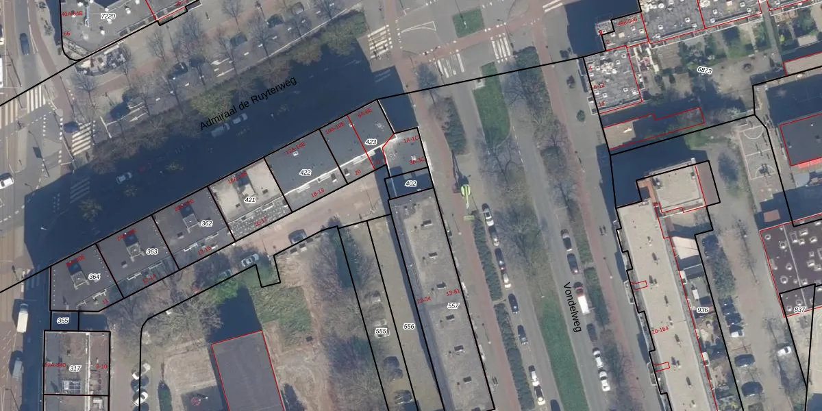 Het perceel waarop Vondelweg 75 staat heeft een oppervlakte van 645 m². Dit is een groot perceel. De perceeloppervlakte wordt geregistreerd door het Kadaster. Gedetailleerde informatie over de maten van dit perceel kunt u vinden in het rapport Kadastrale kaart met maatvoering van Vondelweg 75.