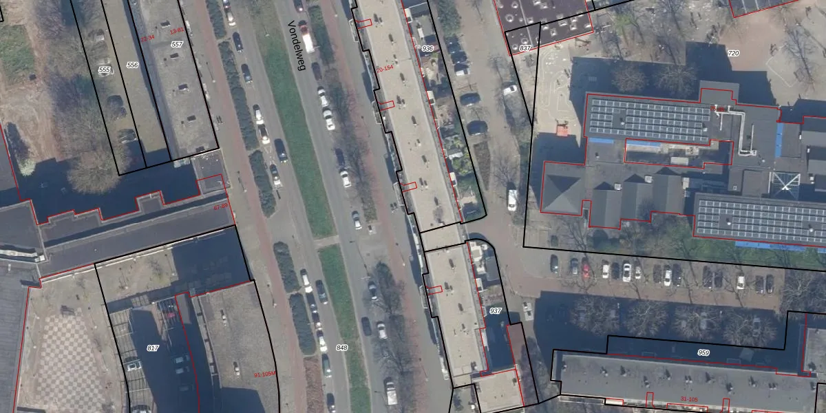 Vondelweg 96 is gelegen op kadastraal perceel RTD04AE936. Deze kadastrale aanduiding is uniek en wordt gebruikt door het Kadaster om eigendomsrechten en andere zakelijke rechten vast te leggen. Het perceel maakt onderdeel uit van de kadastrale gemeente Rotterdam.
