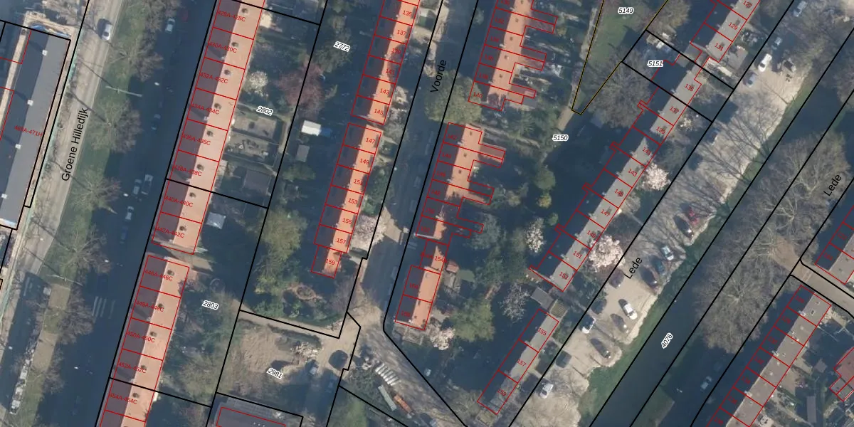 Het perceel waarop Voorde 150 staat heeft een oppervlakte van 6445 m². Dit is een zeer groot perceel. De perceeloppervlakte wordt geregistreerd door het Kadaster. Gedetailleerde informatie over de maten van dit perceel kunt u vinden in het rapport Kadastrale kaart met maatvoering van Voorde 150.