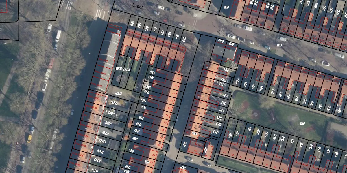Gebruik de zoekbalk of klik op een perceel voor informatie over de adressen binnen dit perceel.