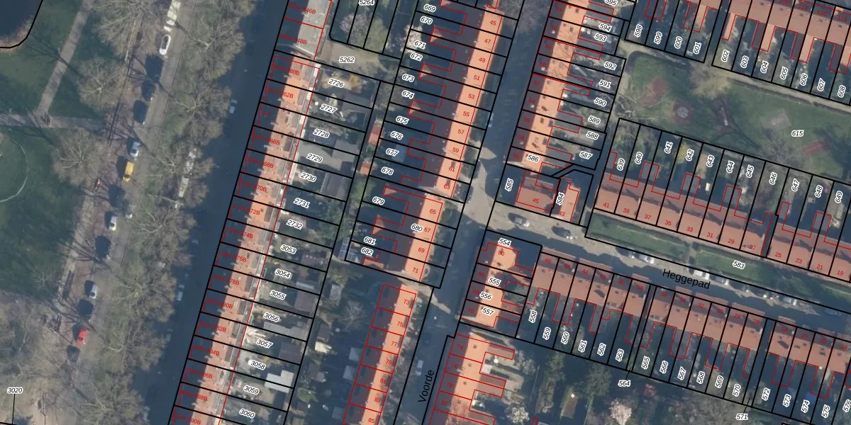 Voorde 65 is gelegen op kadastraal perceel CLS00F679. Deze kadastrale aanduiding is uniek en wordt gebruikt door het Kadaster om eigendomsrechten en andere zakelijke rechten vast te leggen. Het perceel maakt onderdeel uit van de kadastrale gemeente Charlois.