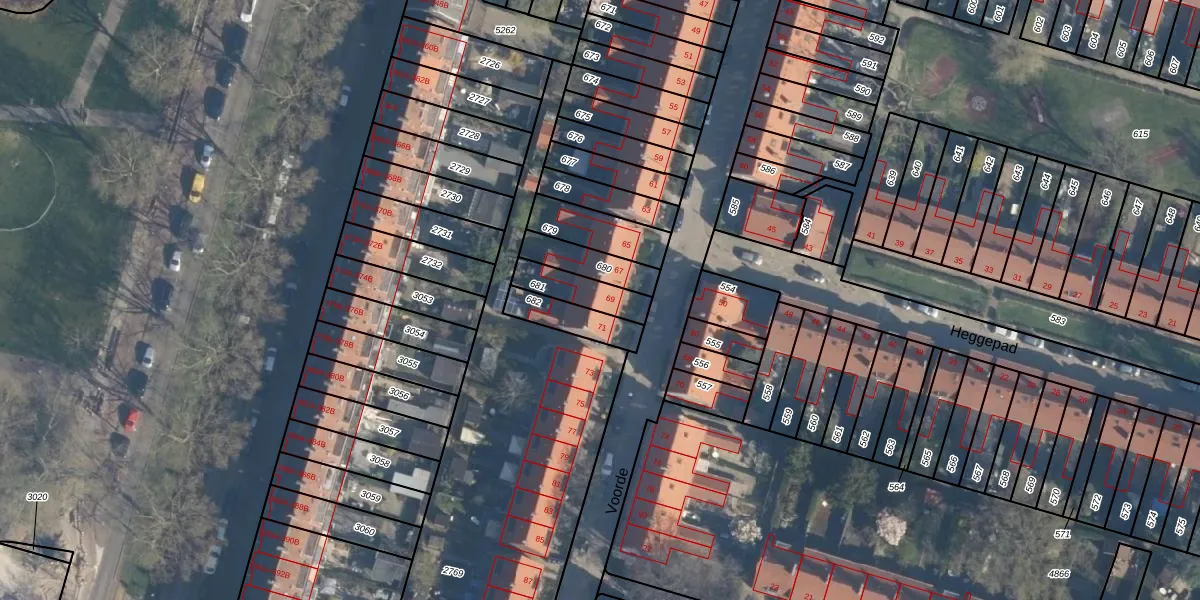 Gebruik de zoekbalk of klik op een perceel voor informatie over de adressen binnen dit perceel.
