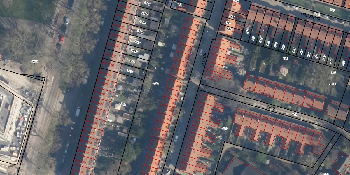 Het perceel waarop Voorde 87 staat heeft een oppervlakte van 2975 m². Dit is een zeer groot perceel. De perceeloppervlakte wordt geregistreerd door het Kadaster. Gedetailleerde informatie over de maten van dit perceel kunt u vinden in het rapport Kadastrale kaart met maatvoering van Voorde 87.