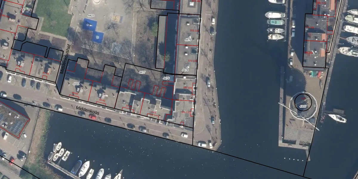 Het adres is gelegen op perceel 4477 in de sectie A en de kadastrale gemeente Delfshaven. De kadastrale aanduiding is aldus DHV00-A-4477. De gemiddelde perceeloppervlakte in de kadastrale gemeente Delfshaven is 628,82 m². Dit perceel is met zijn 1149 m² dus groter dan gemiddeld. De grootste perceeloppervlakte in de kadastrale gemeente is 22,2 ha. De kleinste oppervlakte bedraagt 0 m². Er zijn 30 adressen aanwezig op het perceel. In de Basisregistratie Kadaster (BRK) werden de grenzen van het perceel geregistreerd op 27-11-2007.
