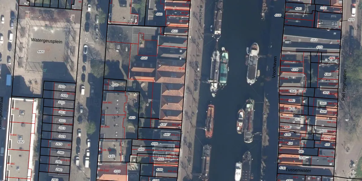 Het adres is gelegen op perceel 4545 in de sectie A en de kadastrale gemeente Delfshaven. De kadastrale aanduiding is aldus DHV00-A-4545. De gemiddelde perceeloppervlakte in de kadastrale gemeente Delfshaven is 628,89 m². Dit perceel is met zijn 1832 m² dus groter dan gemiddeld. Het grootste perceel in de kadastrale gemeente is 22,2 ha. Het kleinste perceel heeft een oppervlakte van 0 m². Op het perceel zijn 13 adressen aanwezig. De huidige grenzen van het perceel zijn digitaal in de Basisregistratie Kadaster (BRK) geregistreerd op 16-03-2021.