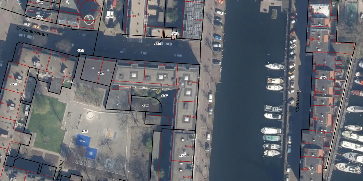 Voorhaven 93-E is gelegen op kadastraal perceel DHV00A4347. Deze kadastrale aanduiding is uniek en wordt gebruikt door het Kadaster om eigendomsrechten en andere zakelijke rechten vast te leggen. Het perceel maakt onderdeel uit van de kadastrale gemeente Delfshaven.