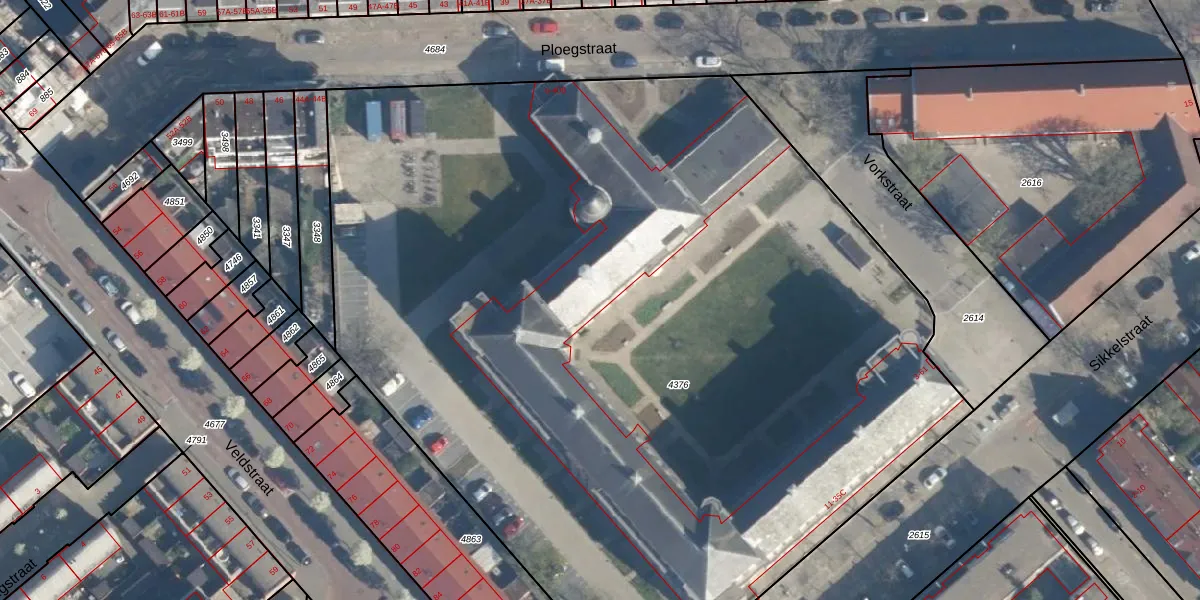 Vorkstraat 57 is gelegen op kadastraal perceel CLS00F4376. Deze kadastrale aanduiding is uniek en wordt gebruikt door het Kadaster om eigendomsrechten en andere zakelijke rechten vast te leggen. Het perceel maakt onderdeel uit van de kadastrale gemeente Charlois.
