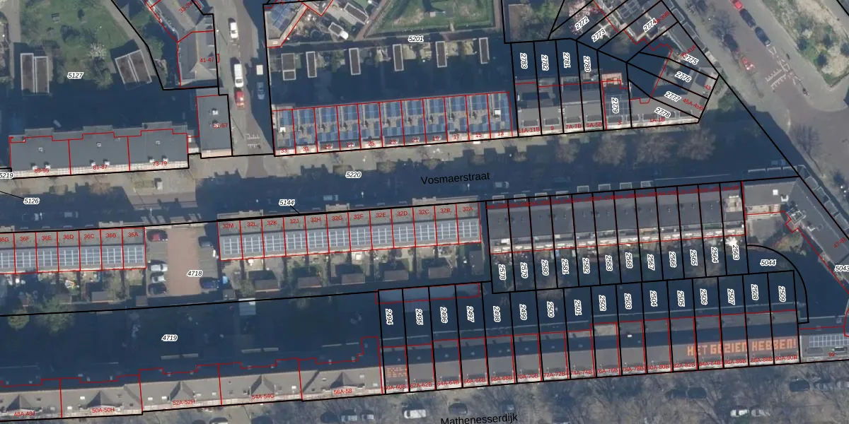 Vosmaerstraat 32-C is gelegen op kadastraal perceel RTD10Z4718. Deze kadastrale aanduiding is uniek en wordt gebruikt door het Kadaster om eigendomsrechten en andere zakelijke rechten vast te leggen. Het perceel maakt onderdeel uit van de kadastrale gemeente Rotterdam.
